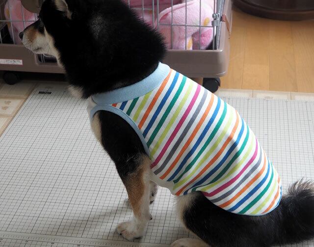 柴犬の尾は巻き毛になっていますので、着丈は短めに仕立てております。